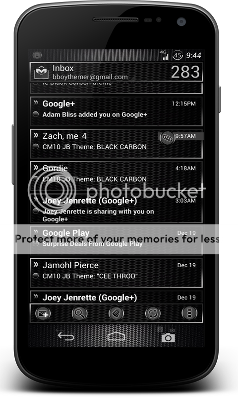 This is a Blacked Out theme with LOTS of Carbon Fiber... It's for the CM10 theme chooser. Some DEVS don't seem to wanna include the MMS and Contacts source commits so If your Mms has all black text in the chat screen, then you might wanna use a different ROM.. Besides that, enjoy!